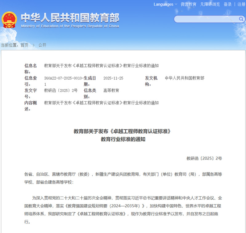 12月10日,教育部发布《卓越工程师教育认证标准》(以下简称《标准》),这是探索形成中国特色世界水平的卓越工程师教育标准的重要一步。